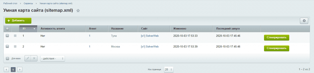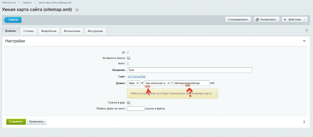 Под каждый сайт, создаем отдельную карту сайта